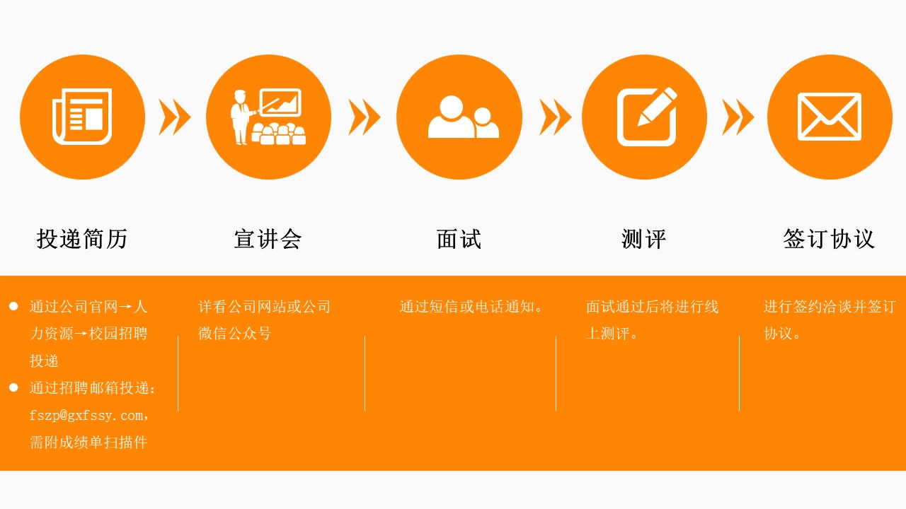 √郵箱投遞:簡歷標題為“學校+專業(yè)+姓名+應(yīng)聘單位”,投遞者請將個人簡歷及成績單掃描(或拍照)件發(fā)送至郵箱:fszp@gxfssy.com。